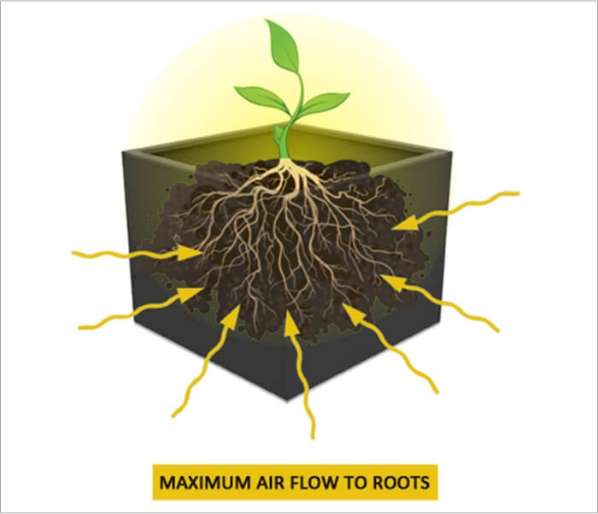 The thick fabric wall creates an air barrier, preventing the outside heat from getting transferred to the potting soil and root system. In contrast, conventional plastic pots absorb external heat, which is then transferred to the soil damaging the root system.